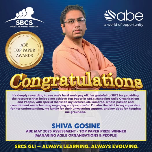 We extend heartfelt congratulations to Mr. Shiva Gosine and Ms. Sarah Maharaj-Dean for their hard work and success, having performed exceptionally well in the March and May 2025 ABE assessments, earning Top Paper Awards as follows: